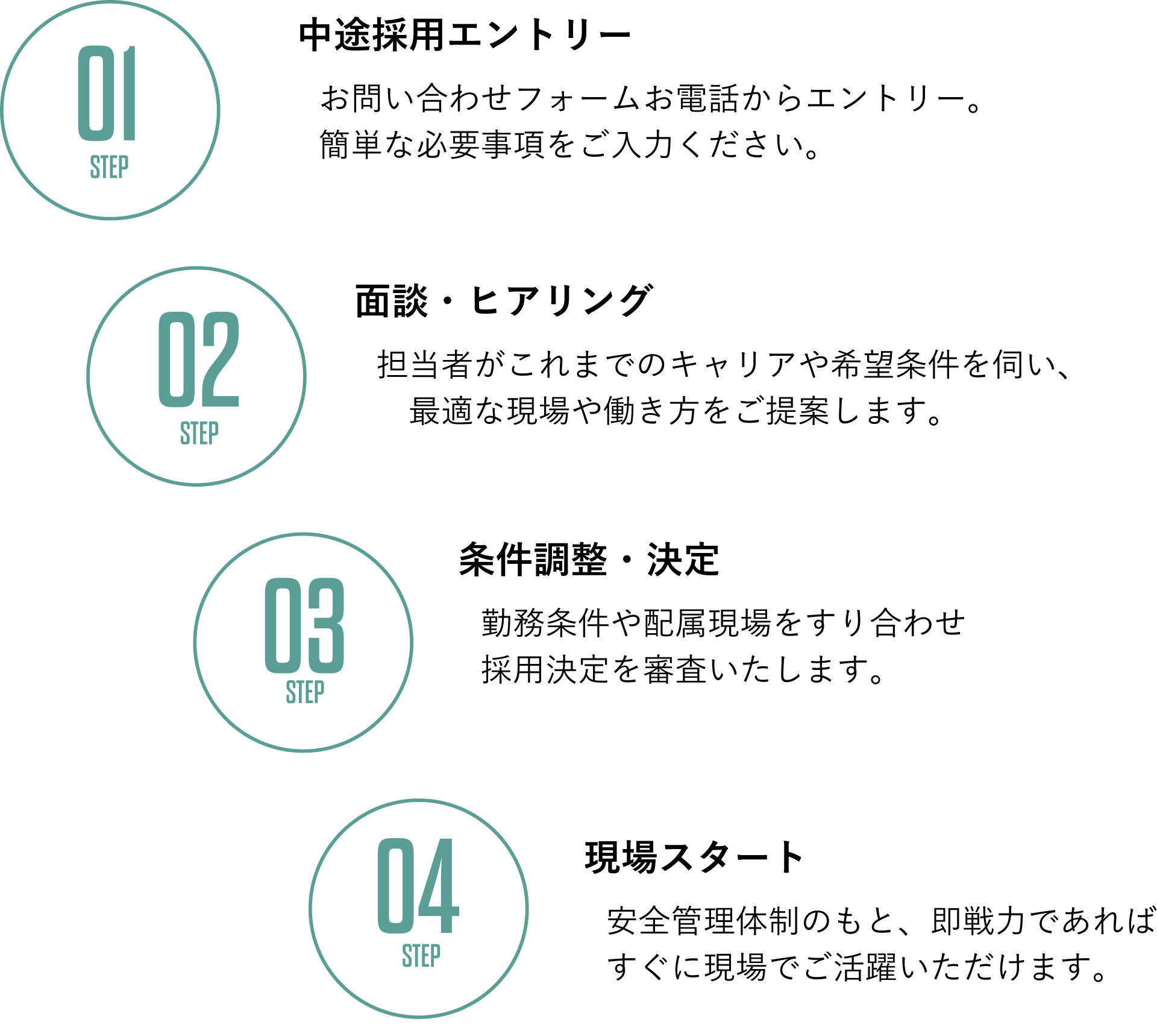 安全基準を徹底した熟練の技術で、工期を守り、確かな品質を支えます。